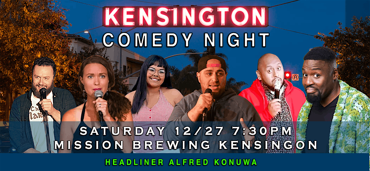 Kensington Comedy Night is San Diego’s hottest free stand-up show, happening every Saturday at 7:30PM at Mission Brewing Kensington. 🎤🍻 Each week features a brand-new lineup of top comics bringing the laughs, while you kick back with craft beer, hard seltzers, or wine. There’s never a cover charge—just a packed room, great drinks, and nonstop comedy energy that makes Saturday nights unforgettable. <NOTE: This show is usually on the patio unless it rains or it gets really cold, then it will be moved inside.>