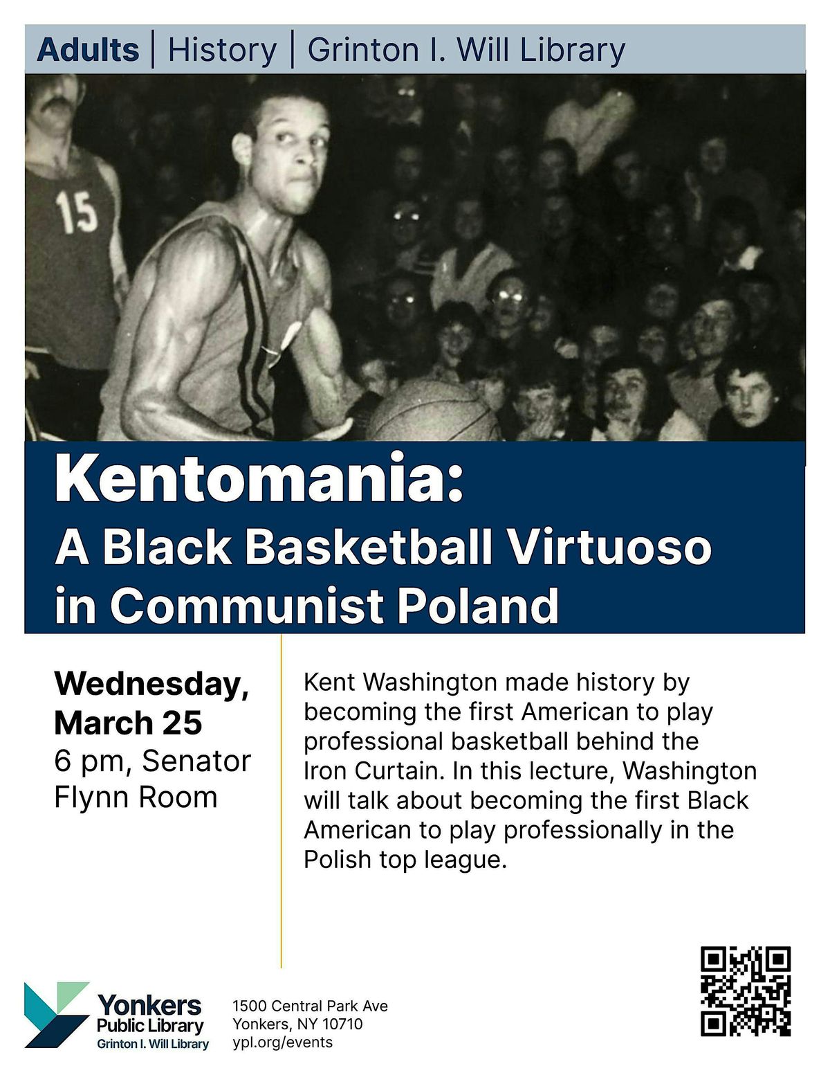 Kent Washington made history by becoming the first American to play professional basketball behind the Iron Curtain. In this lecture, Washington will talk about becoming the first Black American to play professionally in the Polish top league.