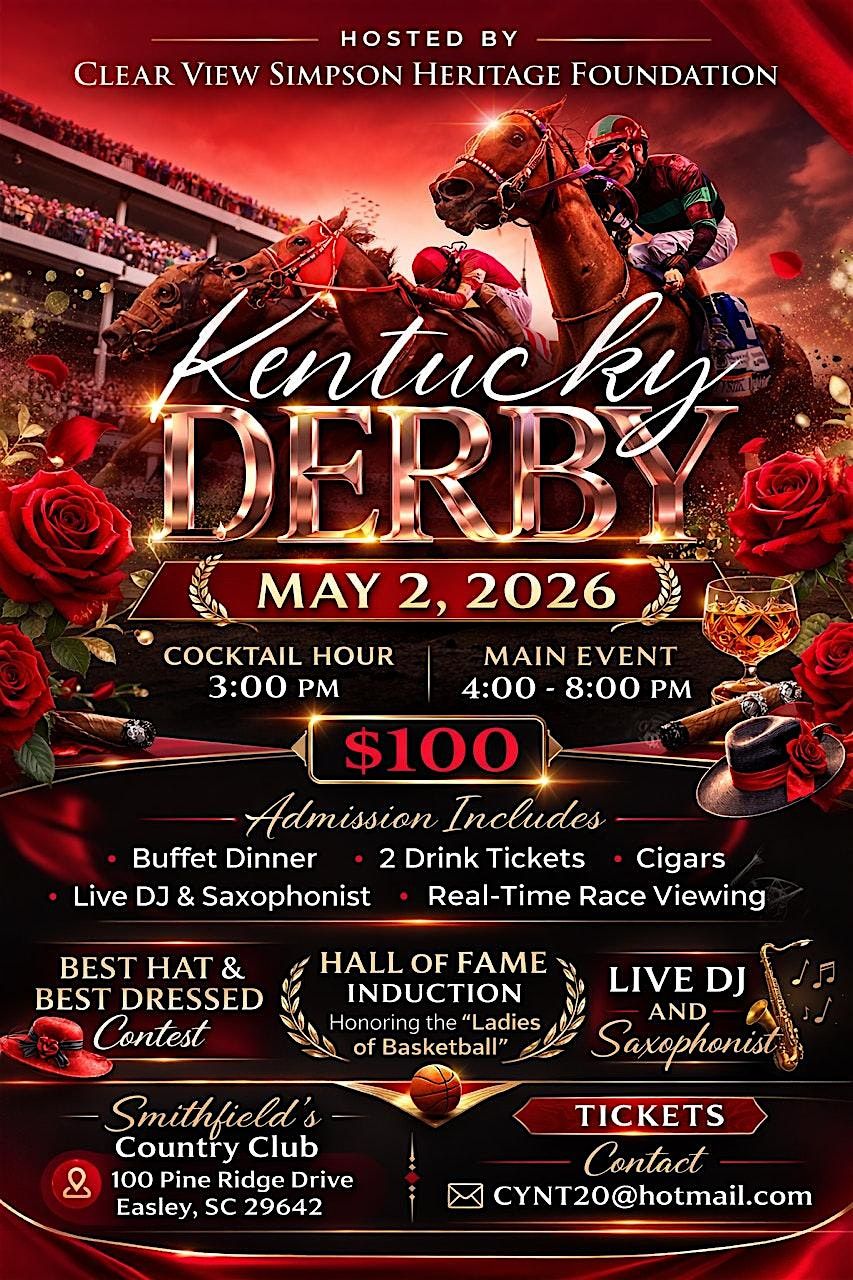Welcome to the Kentucky Derby Party! Get ready for a day filled with excitement, fun, and of course, horse racing. Join us on Sat, May 02, 2026 at 3:00 pm at 100 Pine Ridge Dr for a day you won't forget.