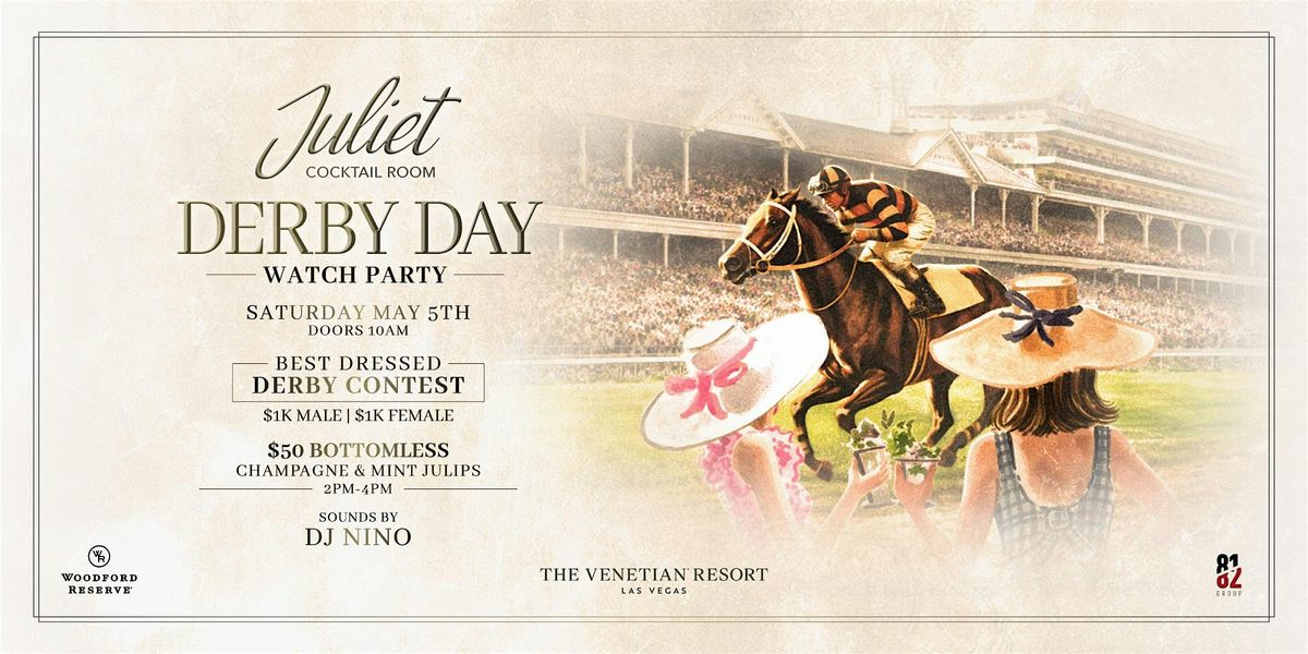 Celebrate Derby Day in style at Juliet Cocktail Room on Saturday, May 5 starting at 10 AM. Catch all the race day excitement in a lively, upscale setting, then stick around for $50 bottomless champagne and mint juleps from 2 PM to 4 PM. Dress to impress for the Best Dressed Derby Contest with $1,000 prizes for both male and female winners, and enjoy the sounds of DJ Nino as the party carries on throughout the day.