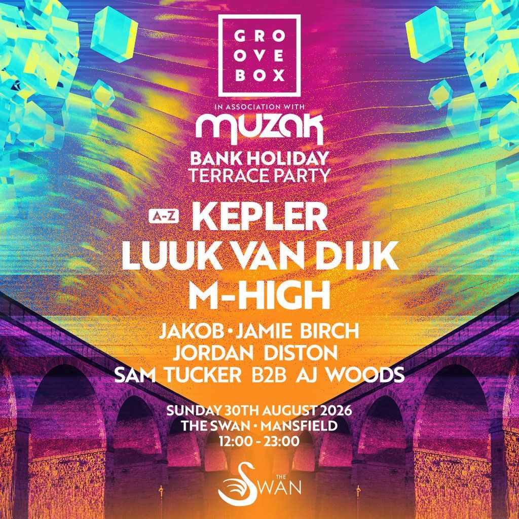 Groovebox & Muzak return to The Swan in Mansfield on Sunday the 30th of August for a day rave with Kepler, Luuk Van Dijk, M-High & more!Artists