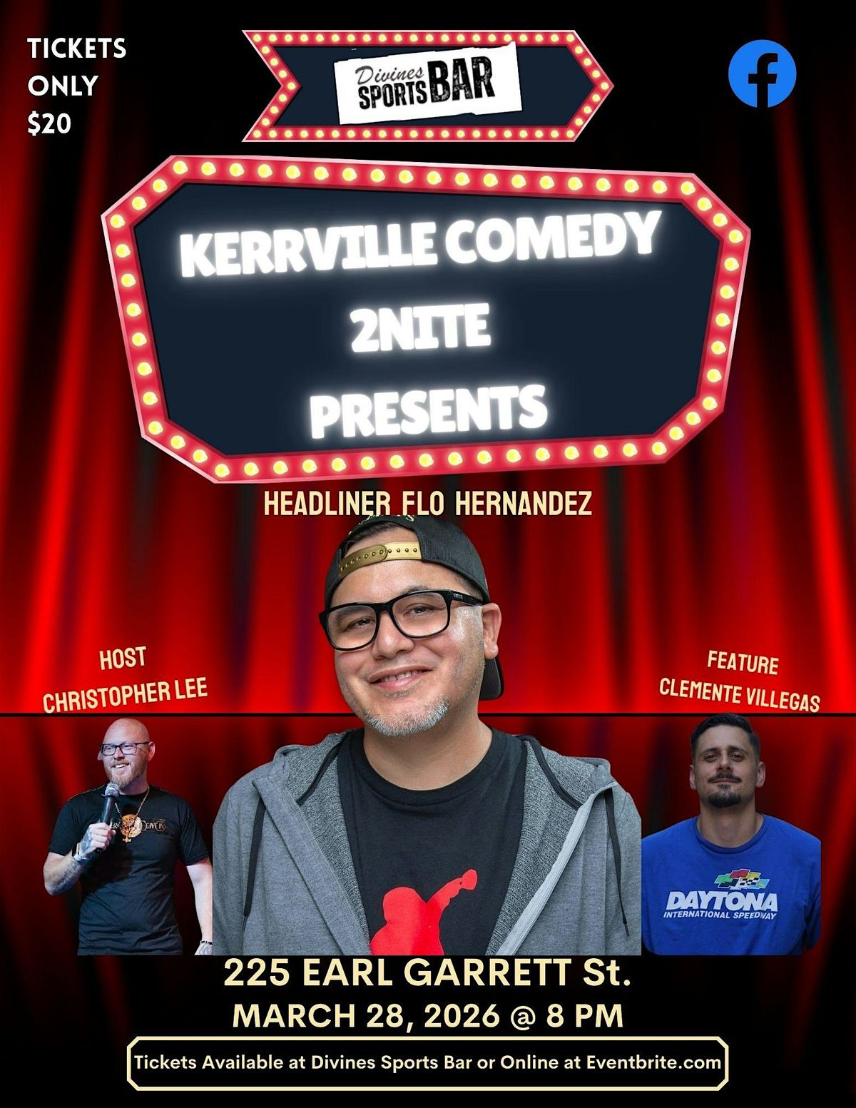 Join us in person for an evening full of laughs and good vibes at KERRVILLE COMEDY 2NITE. Whether you're a local or just passing through, come kick back and enjoy some hilarious live stand-up that'll have you rolling in the aisles. Don’t miss out on the fun—grab your friends and let's make it a night to remember!
