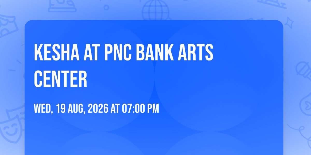 ✨ Enter a world of endless possibilities at Kesha at PNC Bank Arts Center, where every moment tells a story! 🏛️ The stunning PNC Bank Arts Center in vibrant Holmdel, NJ transforms into a realm of wonder on August 19th, 2026 at 07:00 PM. 🌟 They have crafted an experience that goes beyond the ordinary, combining elements of surprise, delight, and pure entertainment. Every detail has been thoughtfully considered to ensure your journey with us is nothing short of extraordinary. 🎯 Join fellow adventure seekers and memory makers in this celebration of imagination and innovation. 🎊 Reserve your spot today and be part of something truly special!