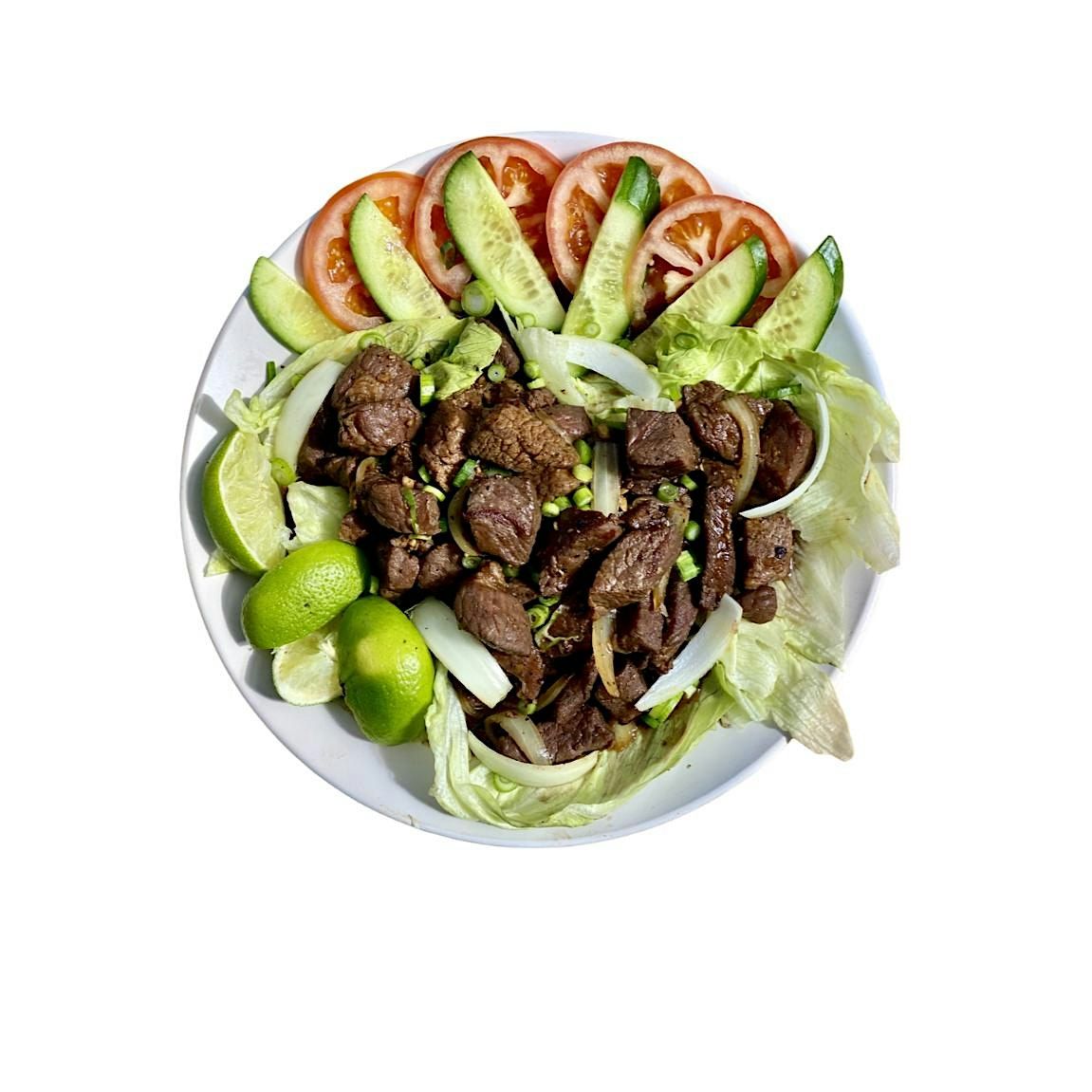 In this workshop component, participants will be introduced to Lok Lak Sach Ko (ឡុកឡាក់សាច់គោ), a classic Cambodian stir-fried beef dish known for its bold, savory flavors and signature lime pepper dipping sauce. The session will highlight key techniques such as marinating, quick searing, and balancing flavors that define this beloved Khmer recipe. This presentation offers a glimpse into a staple dish that reflects both everyday Khmer cooking and its French-influenced culinary heritage.