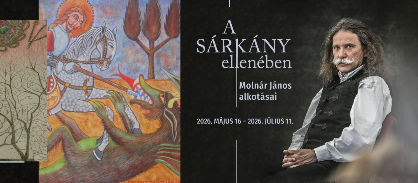 A Halász-kastély termeiben megnyíló kiállítás Molnár János festő- és grafikusművész több évtizedes alkotói útját mutatja be, különös hangsúllyal azokra a művekre, amelyek a látható világ és a belső tapasztalat határterületein születtek. A tárlat címe – A sárkány ellenében – nem csupán képi motívumokra utal, hanem egy átfogó, személyes és egyetemes küzdelem metaforája is.
