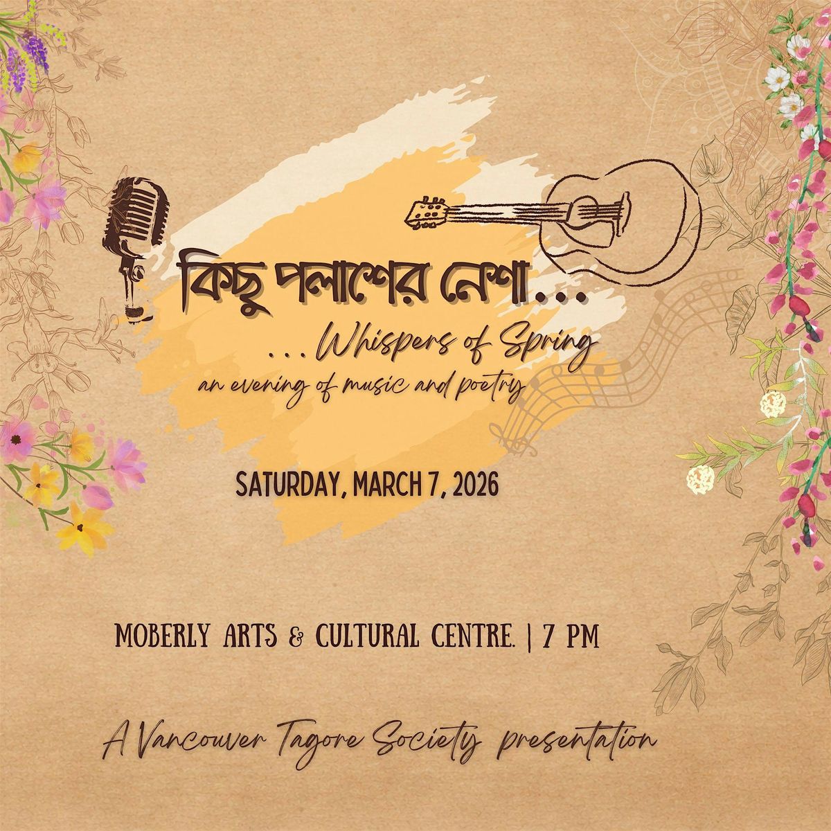 Join us for Kichu Polasher Nesha : Whispers of Spring, an intimate offering to love and nature. Listen to bengali compositions of Fokir Lalon Shah, Rabindranath Tagore, S D Barman, Hemanta Mukhopadhyay, and many more peformed by an intergenerational group of artists. Come for the melodies, stay for the magic, and leave with a heart tuned to the frequency of spring.