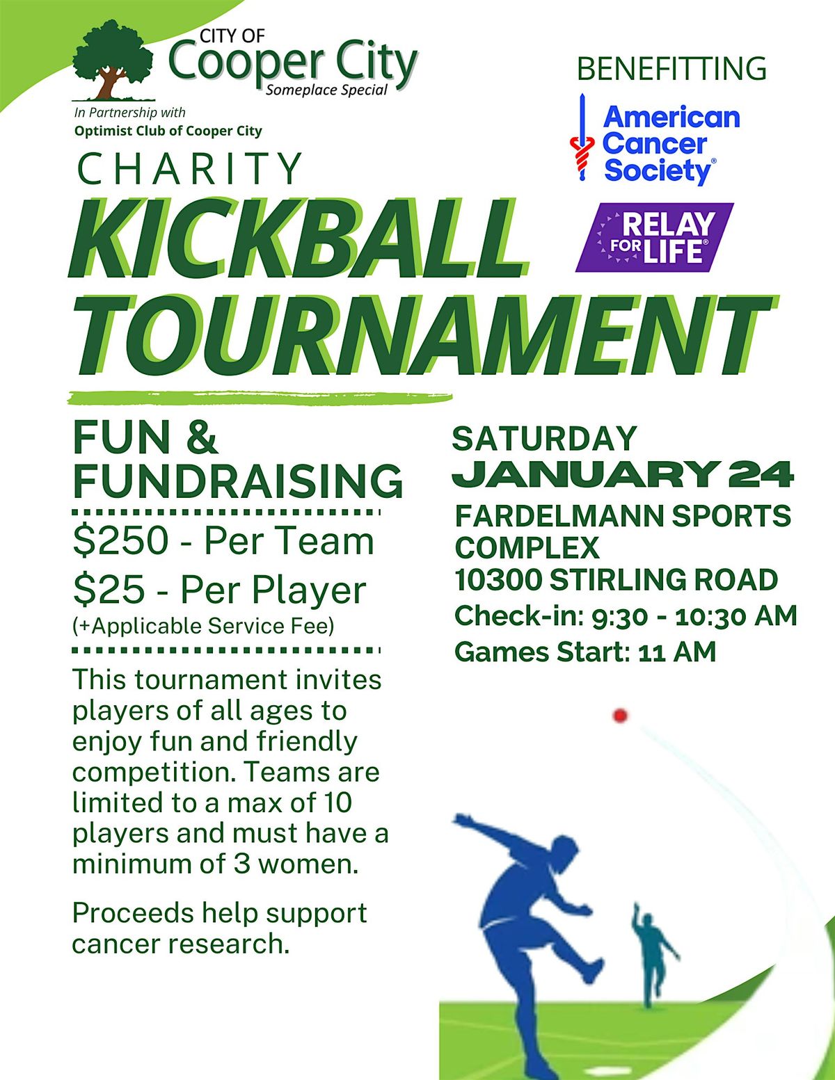 Join in the fun and help us take a kick against cancer by enjoying a fun and friendly competition in this Kickball Tournament supporting the American Cancer Society's Relay for Life.