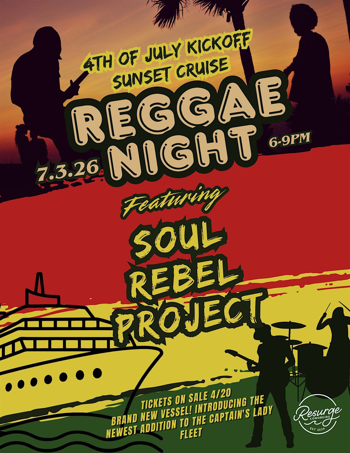 What kind of music is Soul Rebel Project? Roots reggae, rhythm & soul — the perfect soundtrack for a summer night on the water. Look them up, you won't be disappointed.