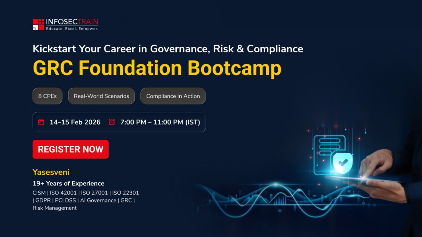 Reserve Your Seat – https://www.infosectrain.com/bootcamp/grc-foundation-bootcamp/?utm_source=allevents&utm_medium=eventbanner&utm_campaign=GRC=Bootcamp