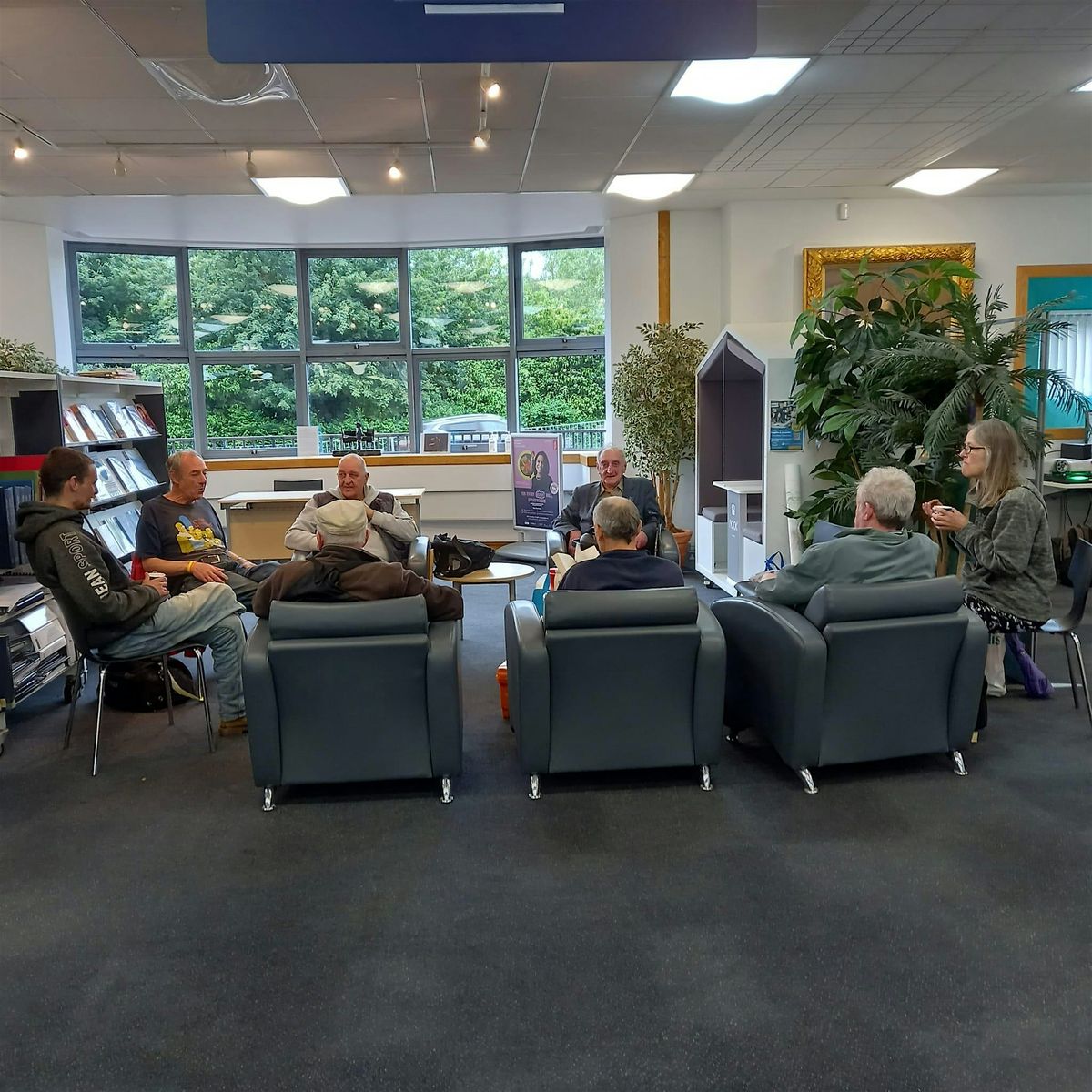 We meet every Monday from 10am to 1pm at Kidderminster Library, pop in for a chat, stay for the full session, or just drop by to say hello.