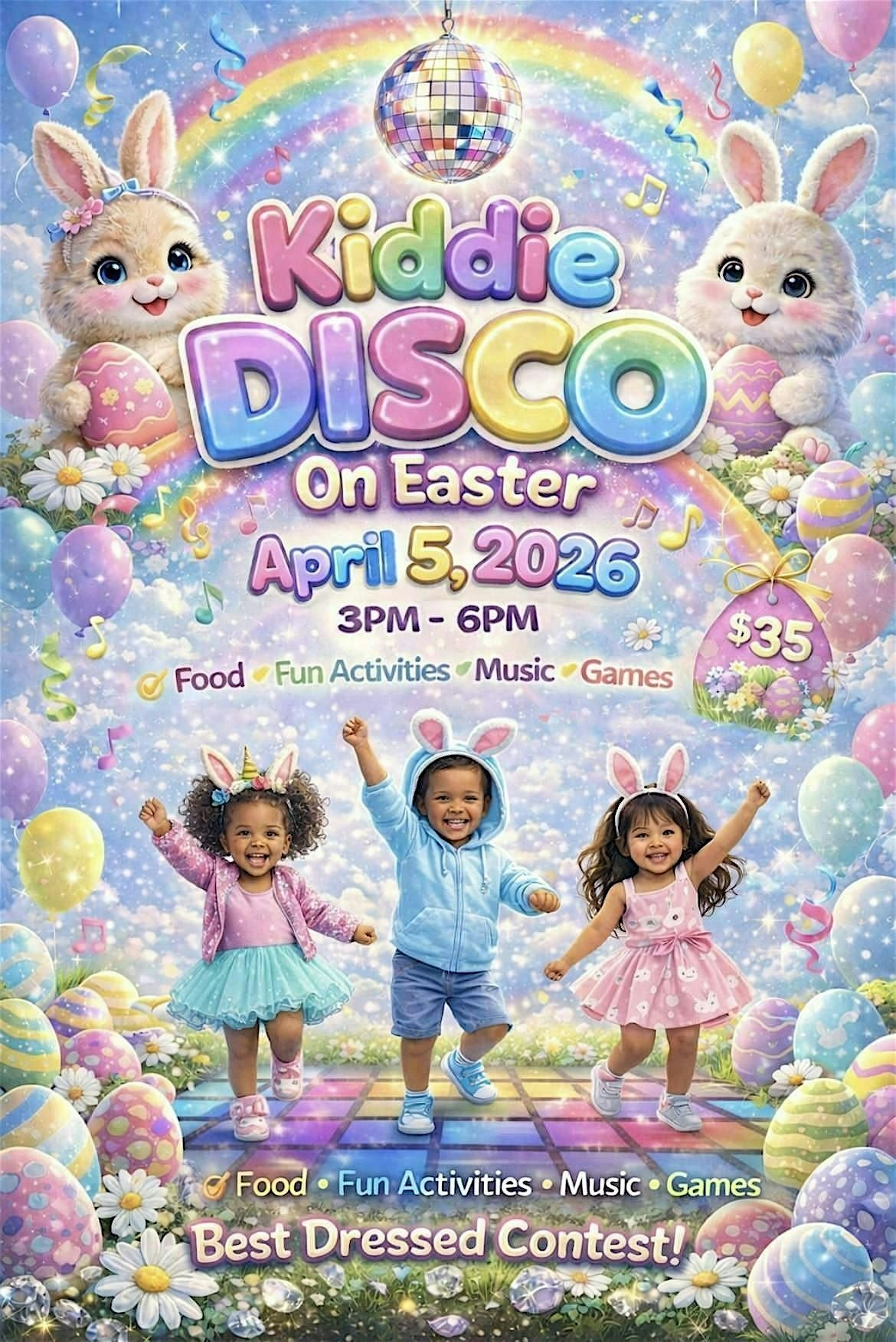 Join us for a fun-filled Easter Party for kids! Bring the little ones out for a day of dancing, games, and fun. Bring easter baskets!