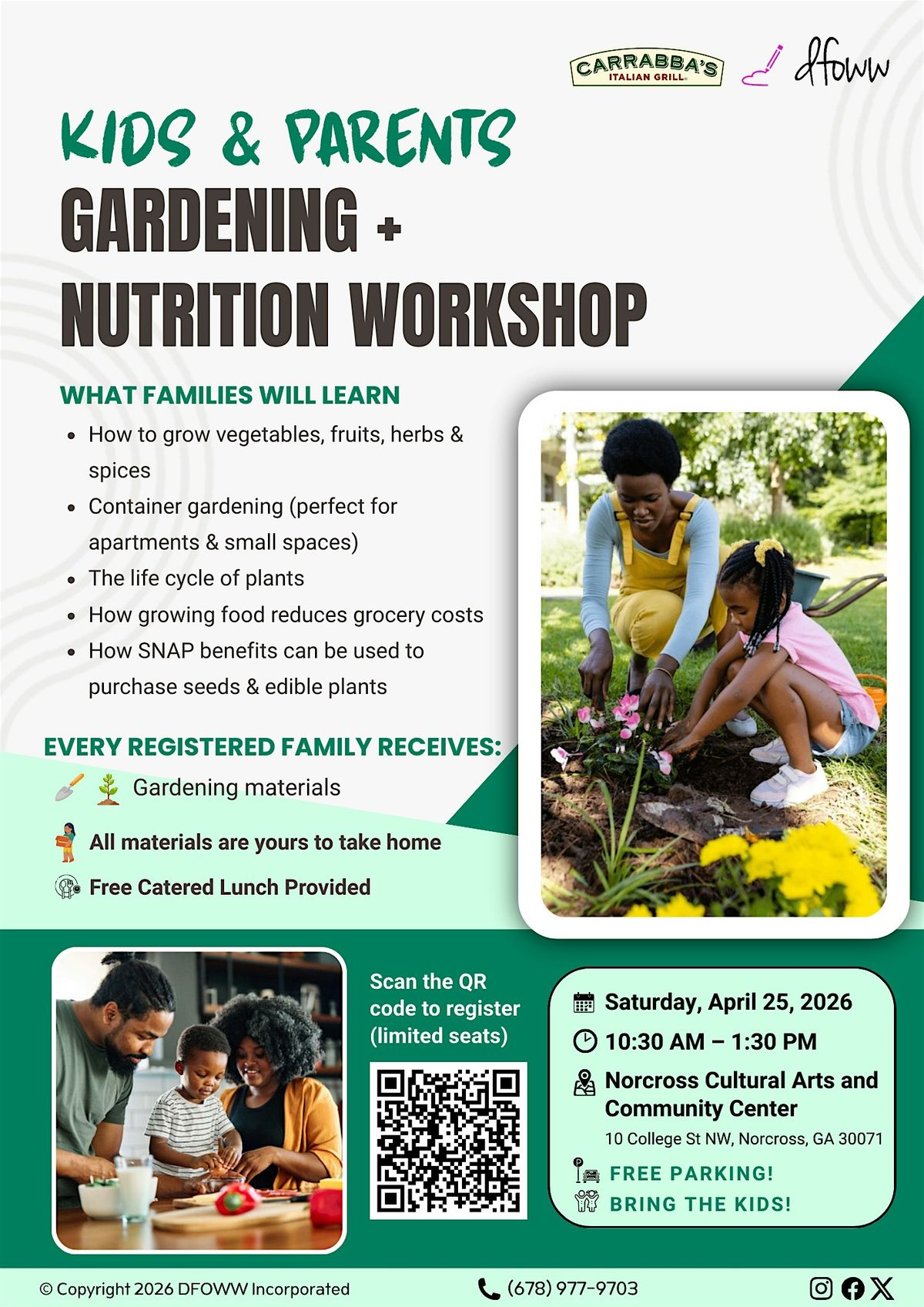 DFOWW Incorporated is hosting a fun, hands-on Kids & Parents Gardening + Nutrition Workshop where families will learn practical skills to help improve health, reduce grocery costs, and build lifelong healthy habits. This interactive workshop will teach families: How to grow vegetables, fruits, herbs, and spices, Container gardening techniques for small spaces, Understanding plant life cycles Simple ways to reduce grocery expenses by growing food at home.