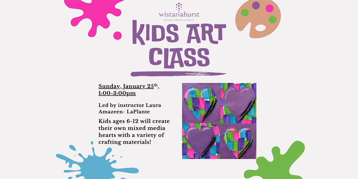 Ring in the new year with a creative afternoon of art making at Wistariahurst Museum Sunday, January 25th. Instructor Laura Amazeen-LaPlante will help children ages 6-12 create their own crafts using paint, construction paper, colored pencil, and oil pastels. These heart shaped masterpieces will be perfect to celebrate Valentine's Day and unleash participants' creativity.