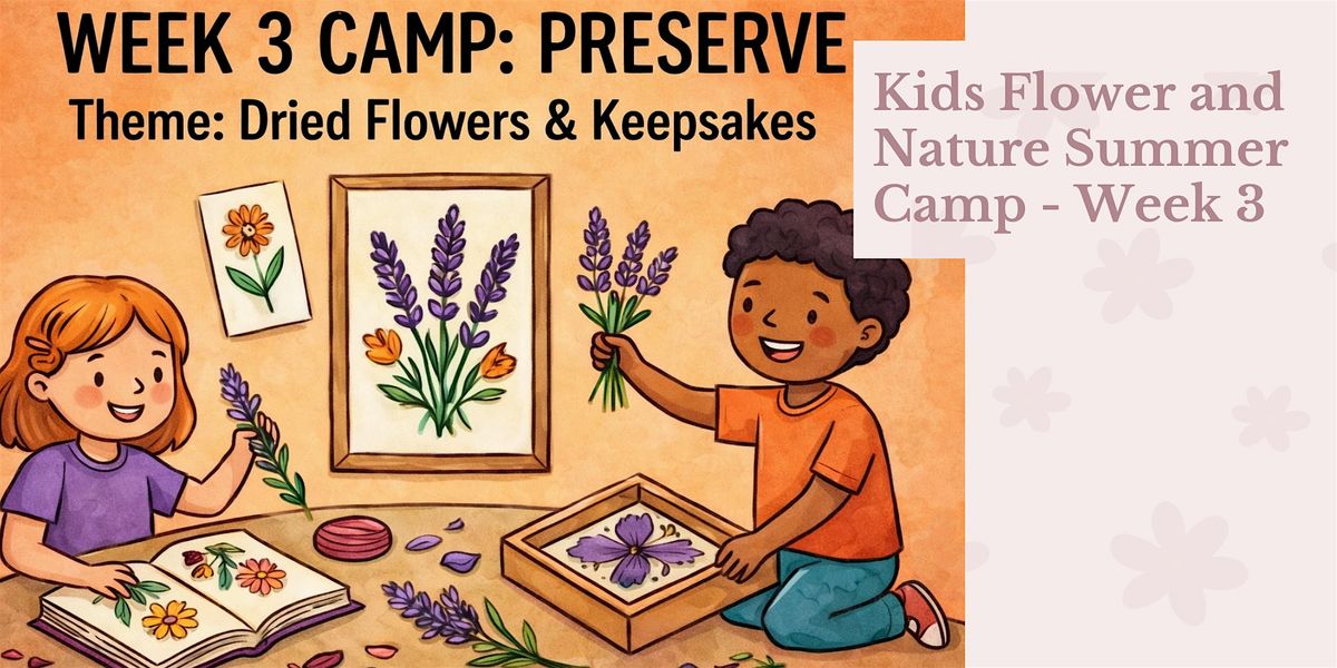Our Kids Flower Journey Camp – Week 3: PRESERVE is a hands-on, creative experience where kids will discover how to transform fresh flowers into lasting keepsakes. Through drying, pressing, and designing, they’ll learn how to capture the beauty of nature in ways that last far beyond the season.