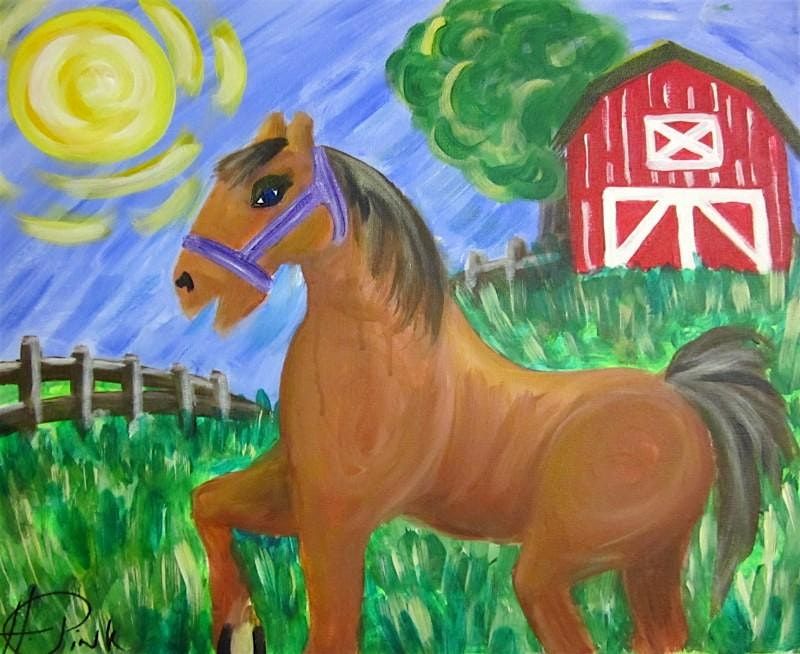 Saddle up for a fun Kid's Horse and Barn painting adventure! Let's create a masterpiece together. All are welcome!