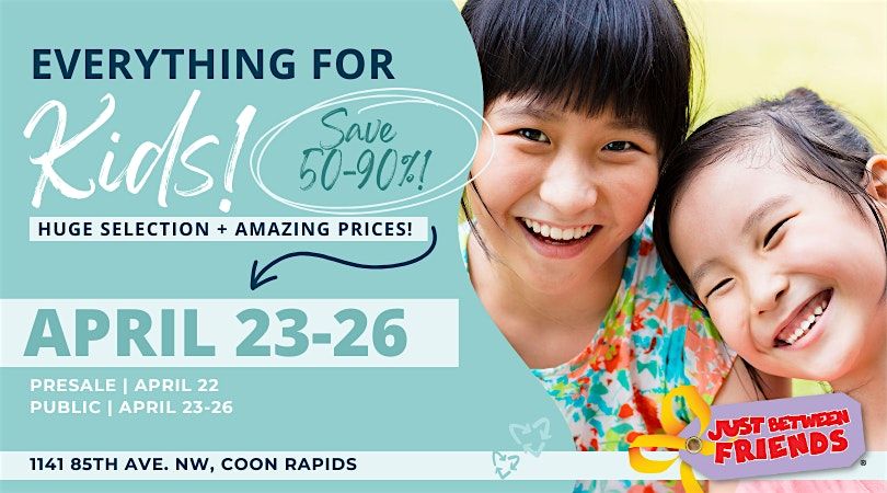 Shop Smart with JBF Coon Rapids April 23-26 to save BIG on kids' items.