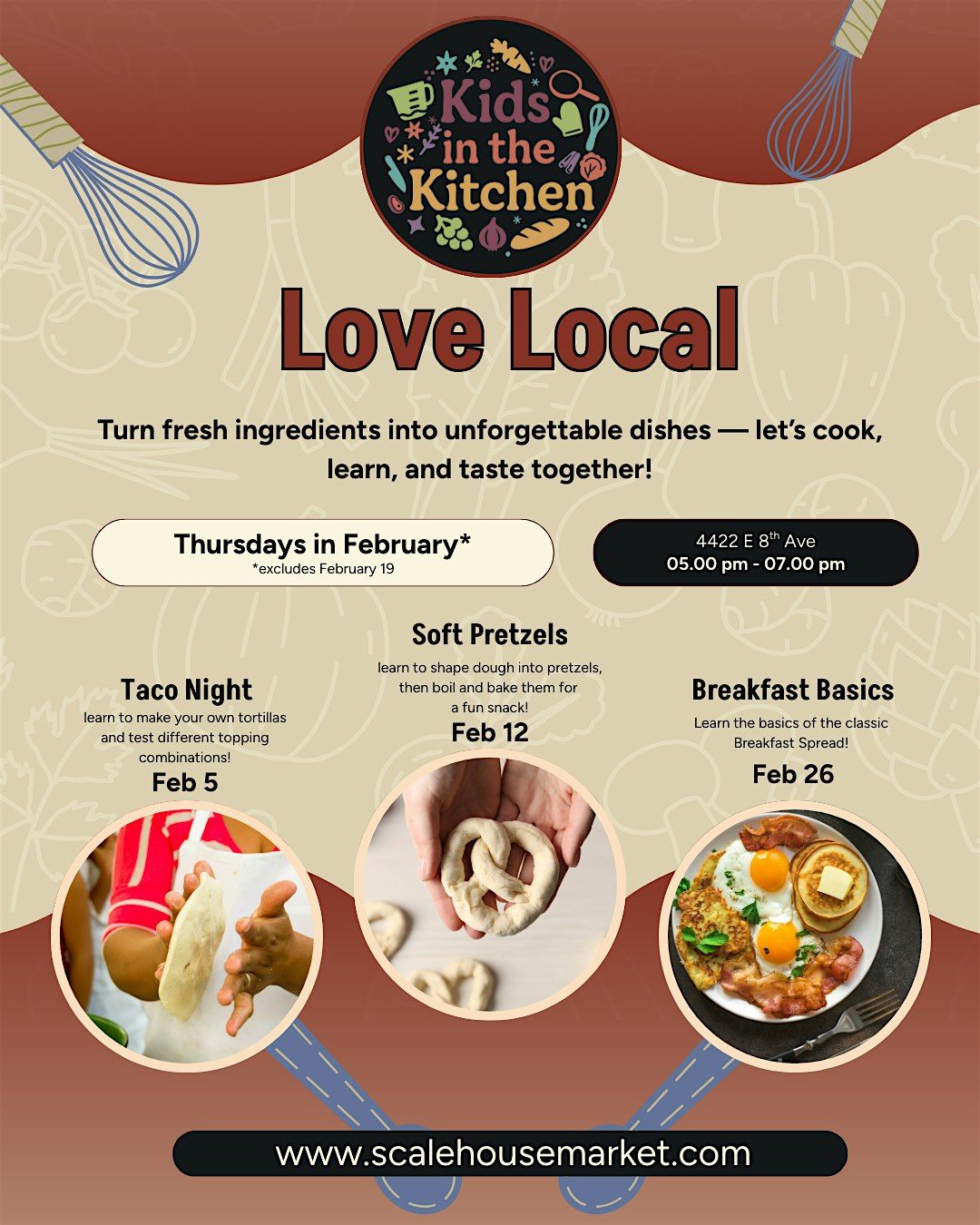 Taco Night brings kids into the kitchen to learn how to make fresh tortillas and explore classic and creative topping combinations. This class focuses on hands-on cooking, flavor pairing, and building confidence in the kitchen.