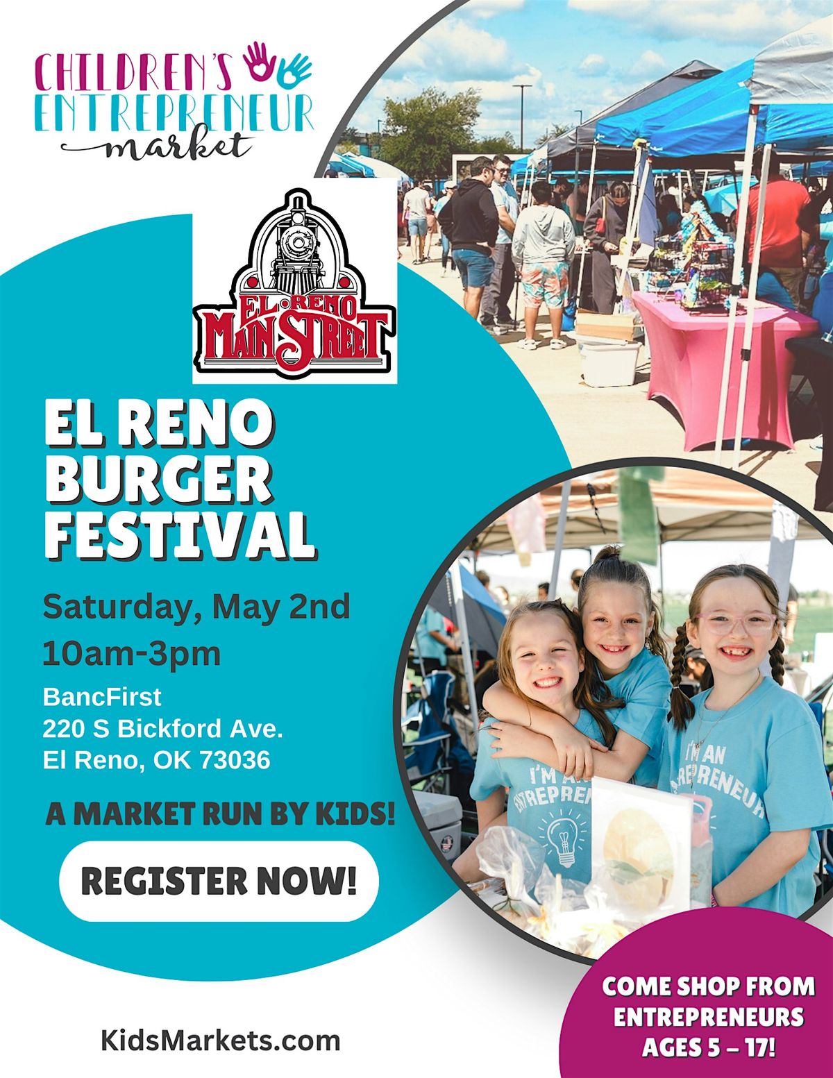 Booth fee REQUIRED $25 for kids 5-17yo. BOOTHS CAN ONLY BE PURCHASED ON OUR WEBSITE- https://www.kidsmarkets.com/markets/el-reno