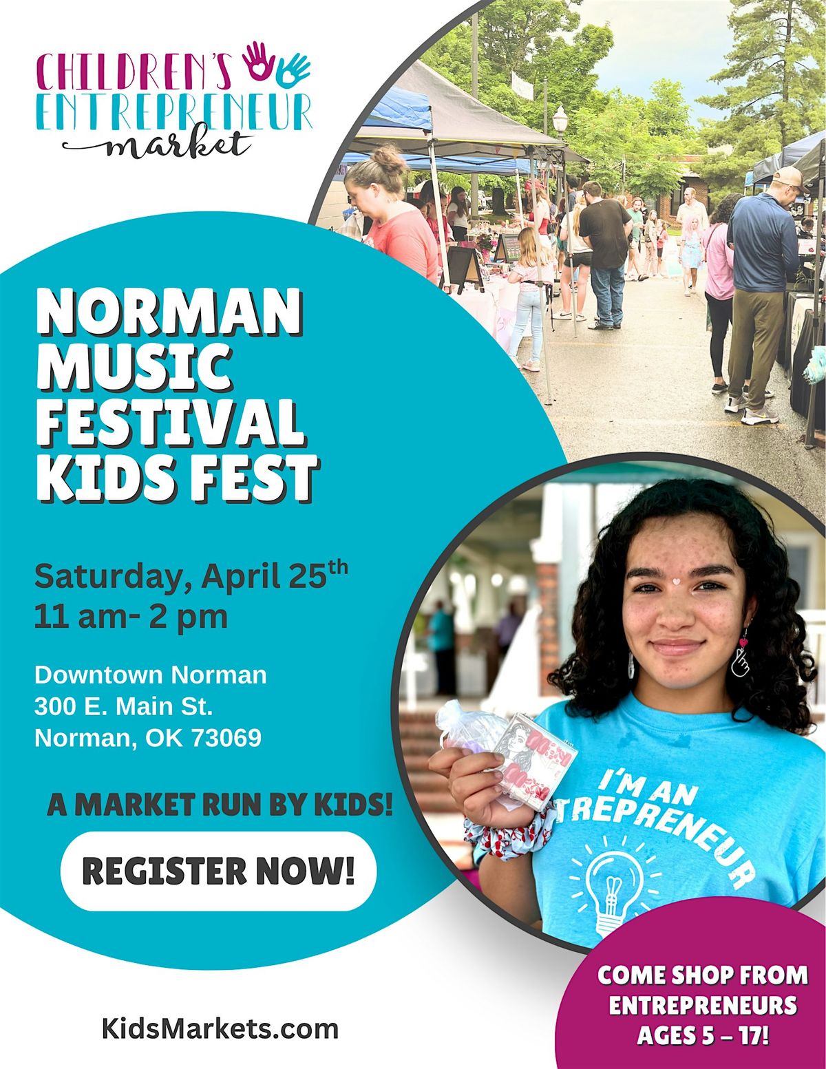 Booth fee REQUIRED $25 for kids 5-17yo. BOOTHS CAN ONLY BE PURCHASED ON OUR WEBSITE- https://www.kidsmarkets.com/markets/norman