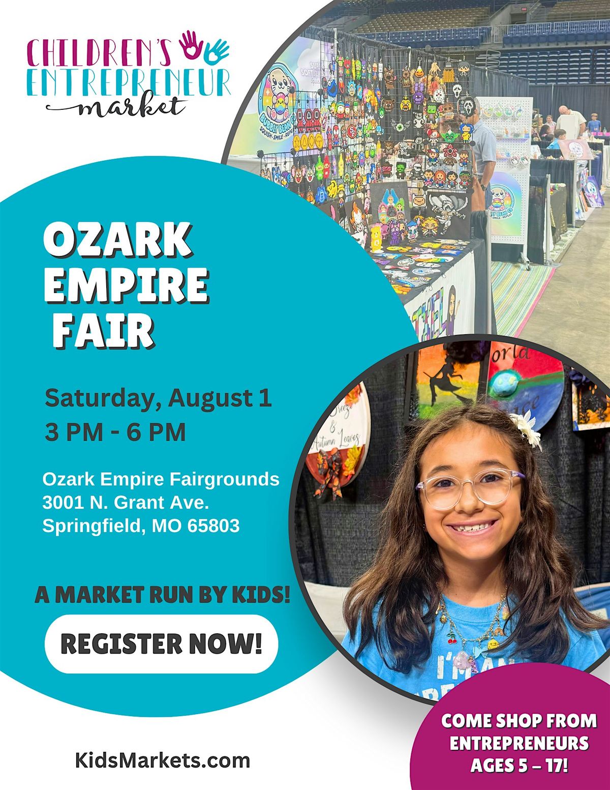 Celebrate the 90th Ozark Empire Fair by turning your kids into stars! With 15,000 visitors daily, they'll interact with crowds, hone sales skills, and join “Summer’s Biggest Party” in the encouraged red, white & blue theme. Epic rides, fair eats, animal shows, live music & carnival thrills await. Build skills, earn cash & make patriotic memories! Spots go fast, so sign up now & let freedom ring!