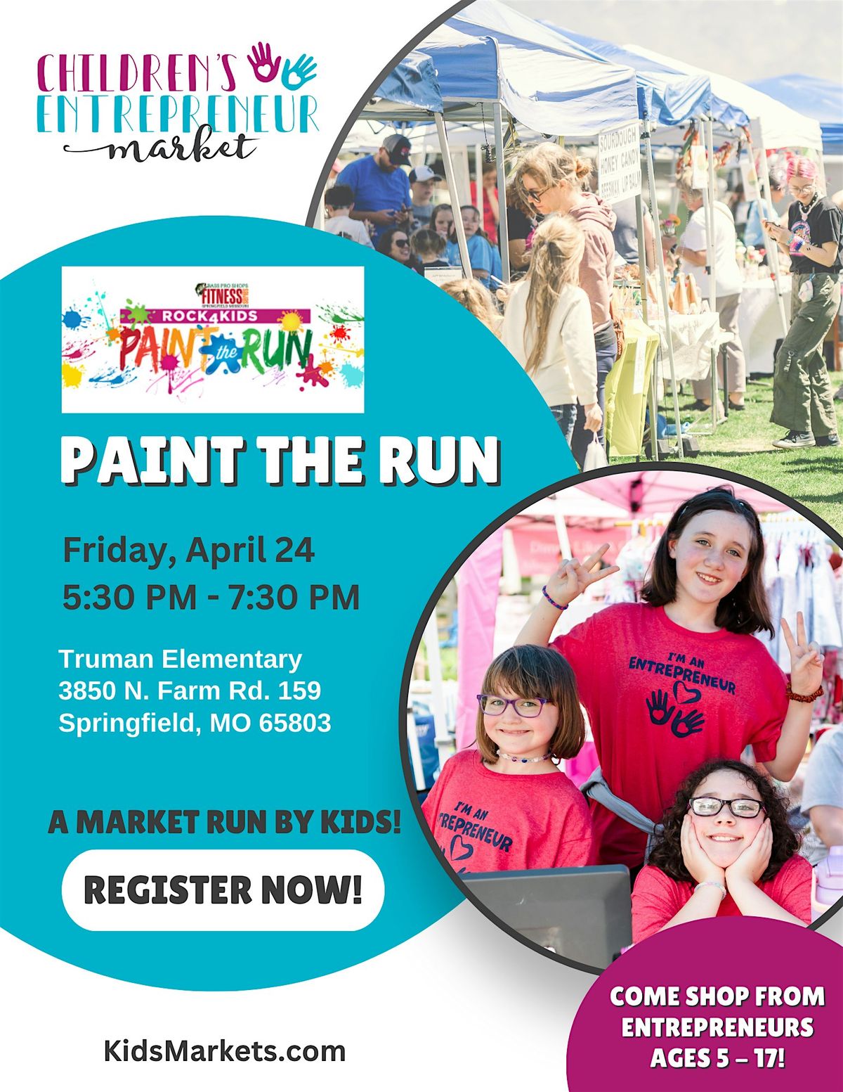 Kids market vendors MUST REGISTER ON . Entrance into the market is free.