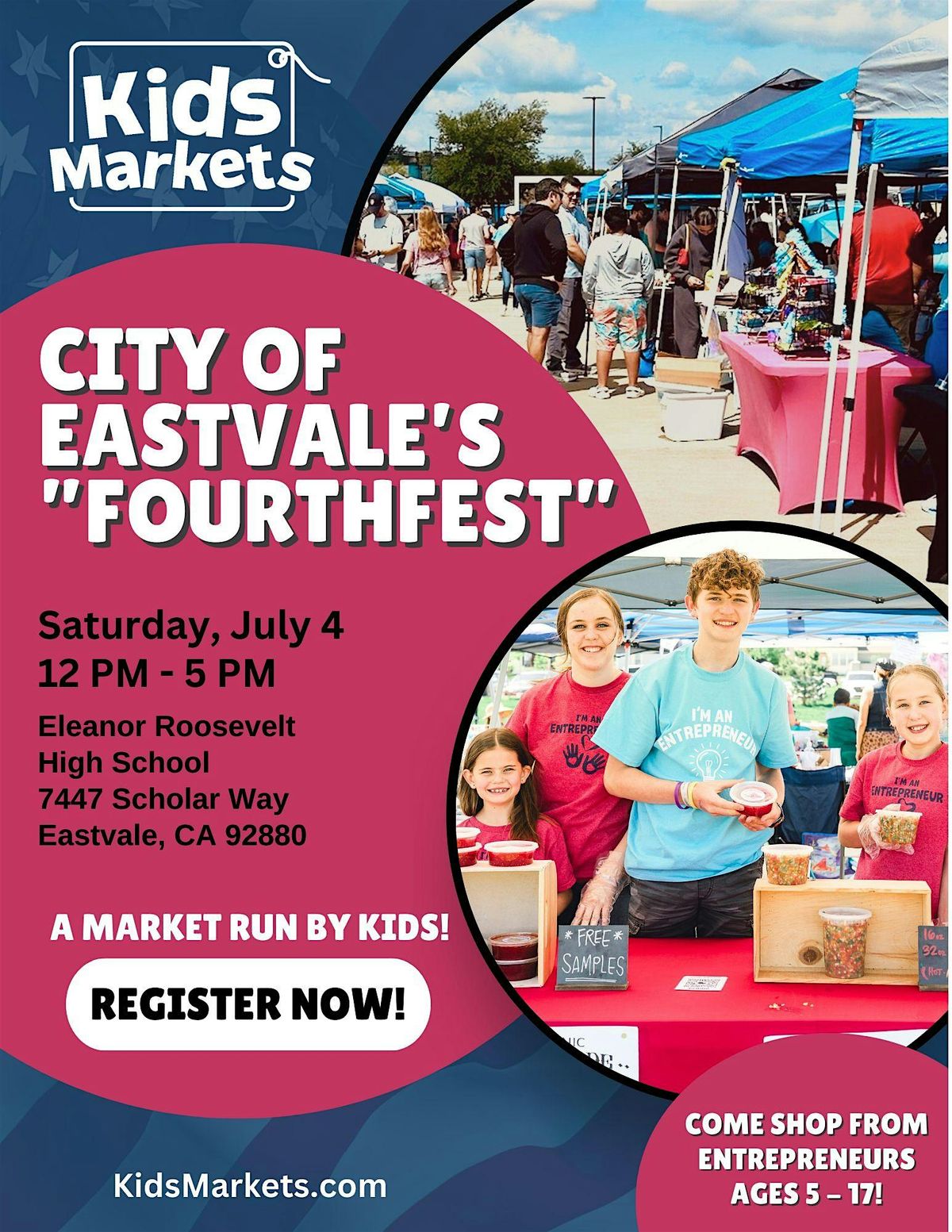 For the very first time, the City of Eastvale will be celebrating the 4th of July and has invited us to be part of their FourthFest celebration! Our markets are a unique opportunity for kid-preneurs to develop a different set of social skills, confidence, and resilience that comes with nurturing a passion for their craft they can share with the community. Visit https://kidsmarkets.com/markets/eastvale to register your kids today and don’t miss out!