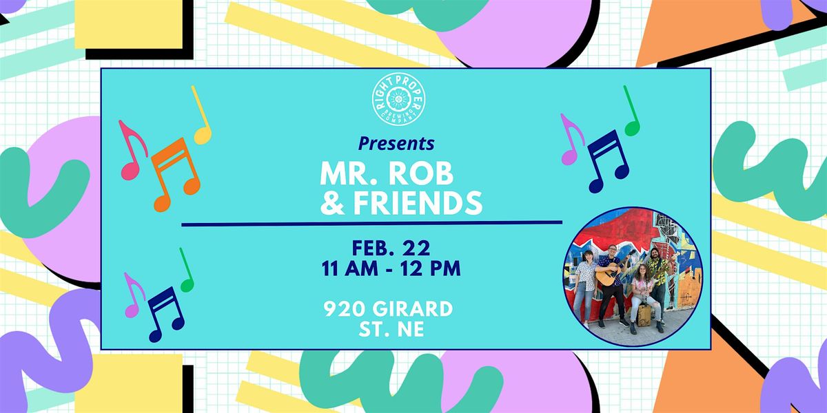 Mr. Rob is an educator, musician, and performer in Washington, DC, who teaches early childhood music for DC Public Schools, plays in the drum line for the Washington Commanders, and performs with his band, Mr. Rob and Friends. Mr. Rob and Friends is a band dedicated to bringing high-quality, engaging music to early audiences that centers on child development and learning. Their performances include original songs, covers of classics, dancing, audience participation, and lots of fun!