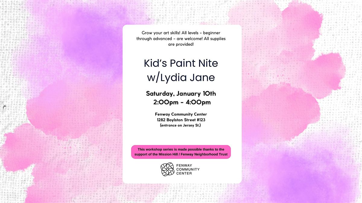 Come to the Community Center for special KIDS paint class with our amazing instructor Lydia Jane!About this Event