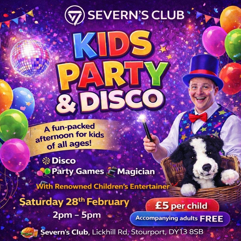 Kids Party & Disco at Severn's Club with magician Andrew Healey. Games, disco fun, ages 6-12.