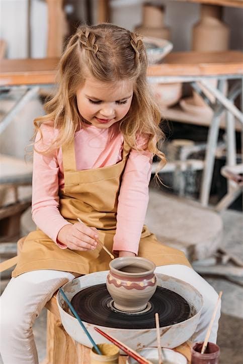 The introductory workshop allows students to learn how to throw on a potter's wheel and hand build (i.e. add a handle if you made a mug, a lid if you made a jar). You'll make a cup, vase or bowl on the wheel and then add accents to your piece.