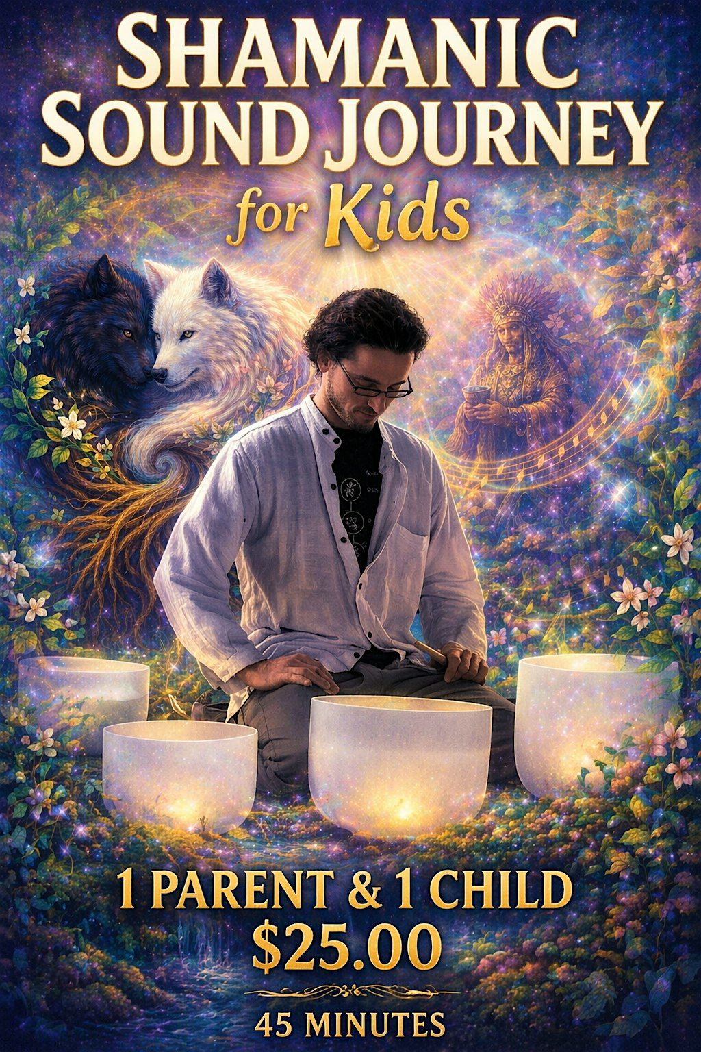 Join Jeremy Sills for a fun & magical in-person experience designed just for kids! This 45-minute sound journey will spark imagination and bring relaxation through playful shamanic rhythms and vibrations. Perfect for parents and kids to enjoy together, this session invites young explorers to dive into a world of sound and discovery. Fee includes one adult and one child.