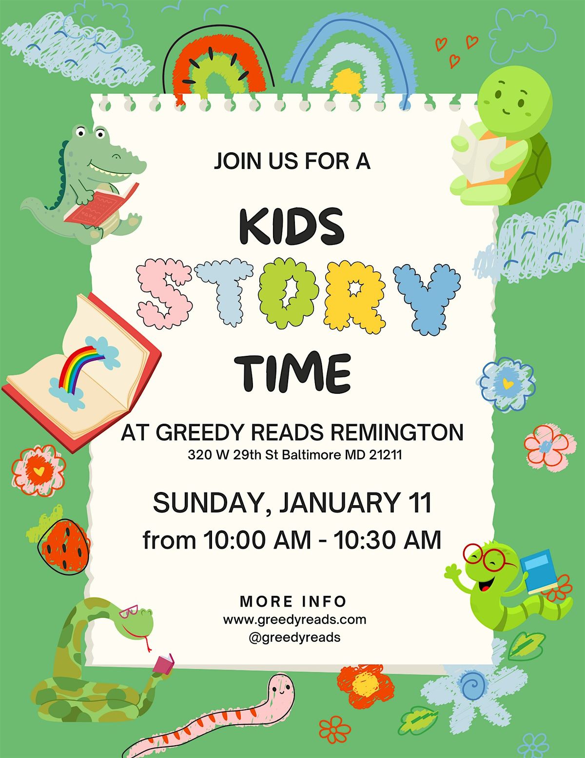 Join bookseller Meg for a kids story time in the cozy kids corner of Greedy Reads Remington!About this Event