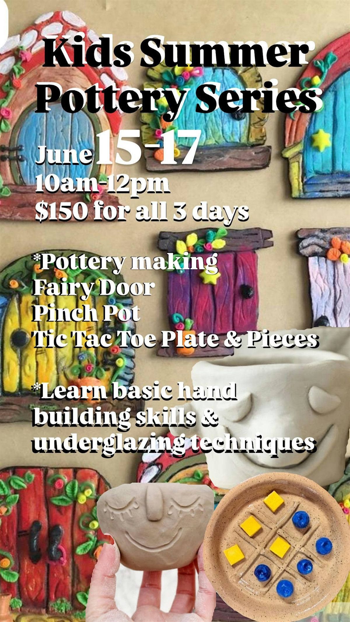 Join us at Petty Betty Art Studio for a super fun pottery series just for kids! During June 15-17 little artists will get to play with clay, learn cool techniques, and make their own masterpieces. Perfect way to kick off summer with creativity and smiles. Don't miss out on this hands-on, messy, and totally awesome experience!