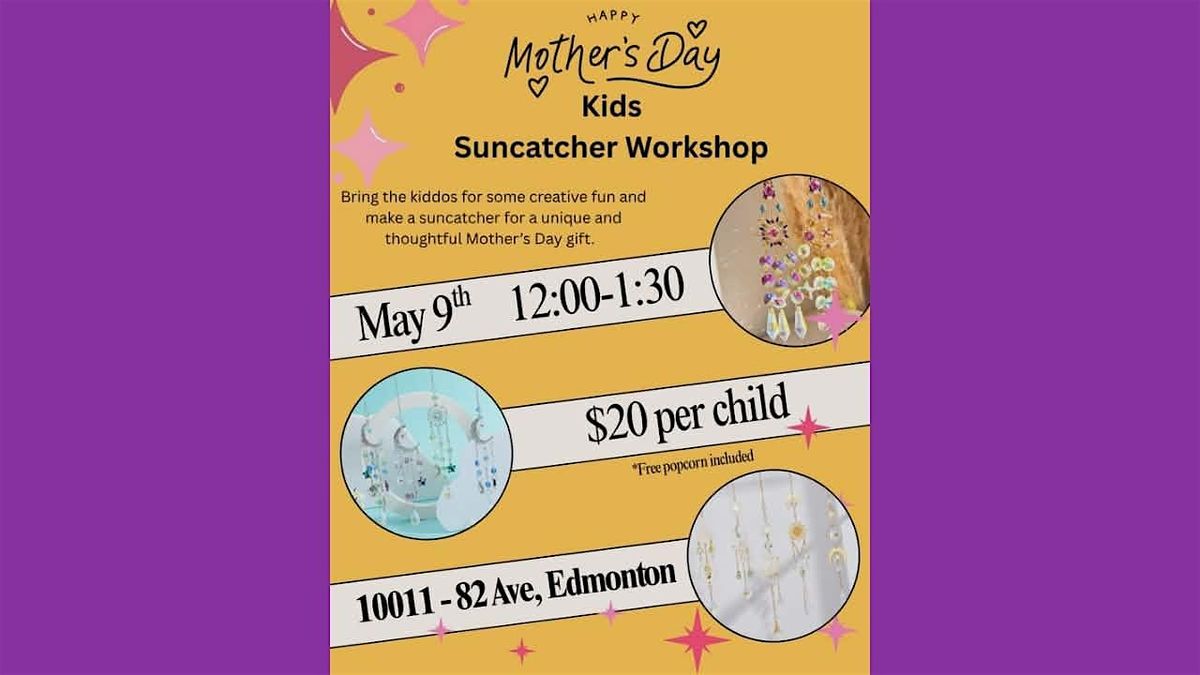 Hey parents! Bring your little artists to create their own Mother's Day gift at our Kids Suncatcher Workshop where creativity shines bright. This fun, in-person event lets kids craft their own colorful suncatchers for mom to hang in window and catch those sunny rays. It's a great way for kids to explore colors, shapes, and have a blast making something special. Join us for a day filled with laughter, art, and sunshine vibes!