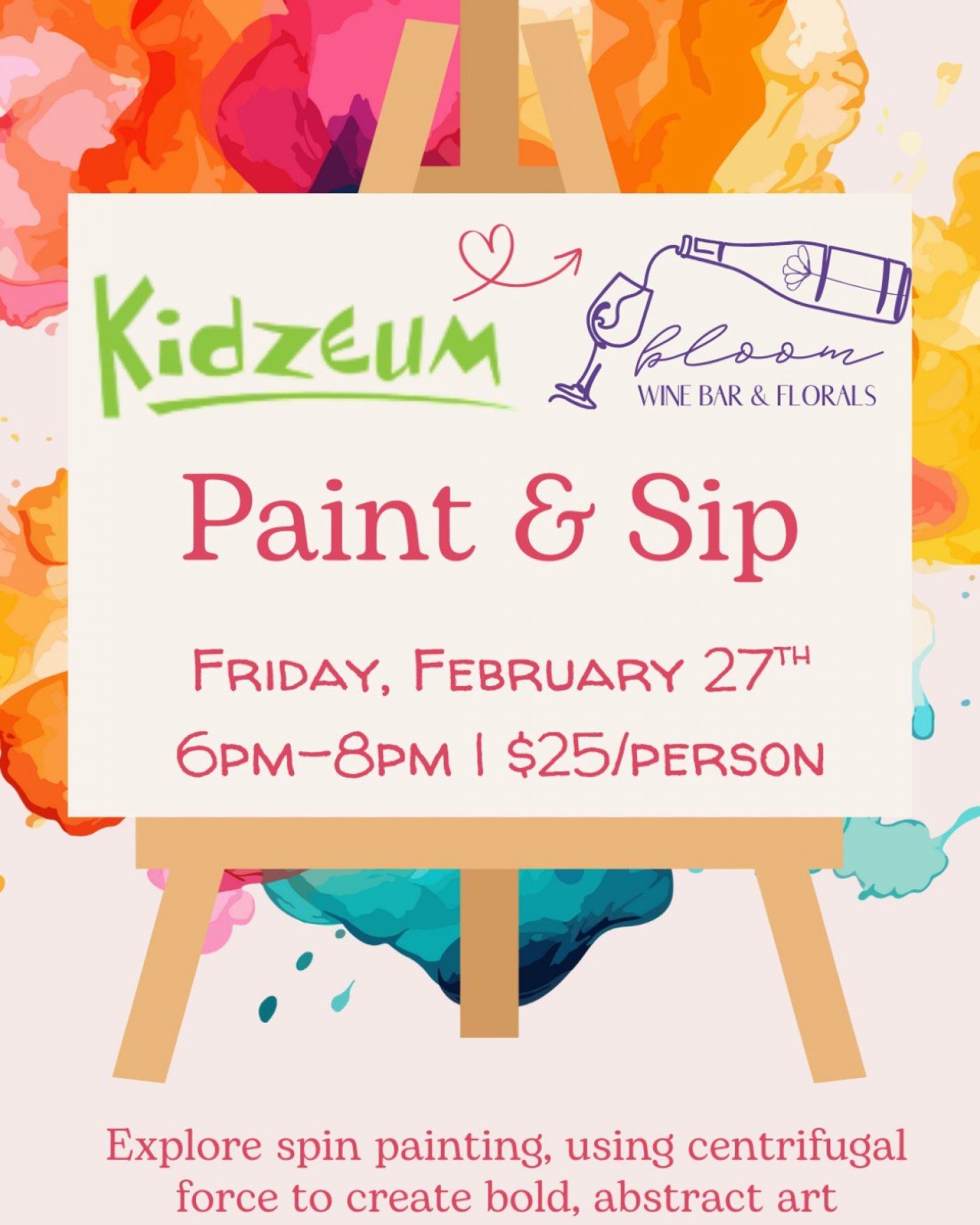 Join Bloom and the Kidzeum of Health and Science for a creative night where art meets motion. Guests will explore spin painting, using centrifugal force to create bold, abstract art while learning the science behind how it works