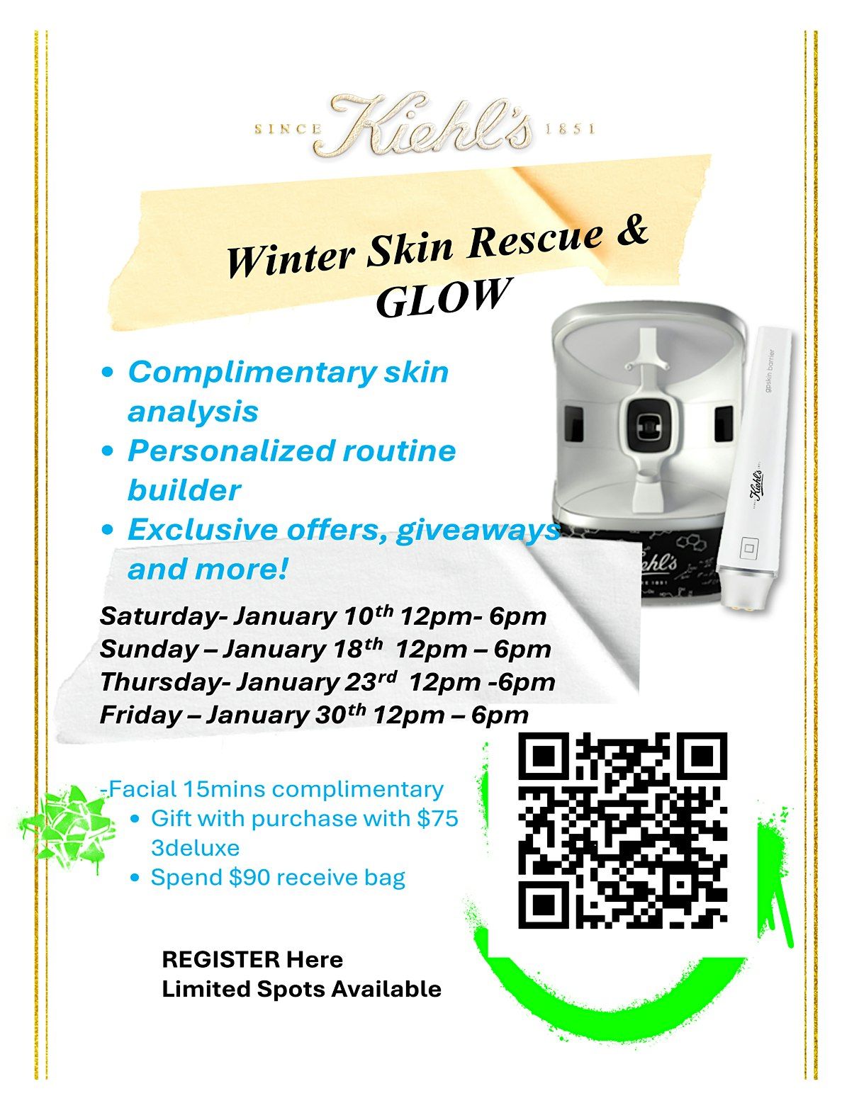 Get ready to rescue your winter skin and glow like never before at the Kiehl's Brea event! Limited spots Available