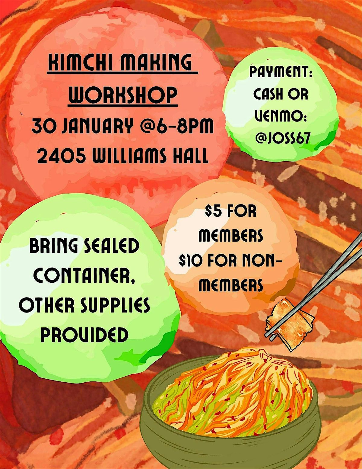 Please bring a sealed container (sterile glass jars are great!) to hold your kimchi.