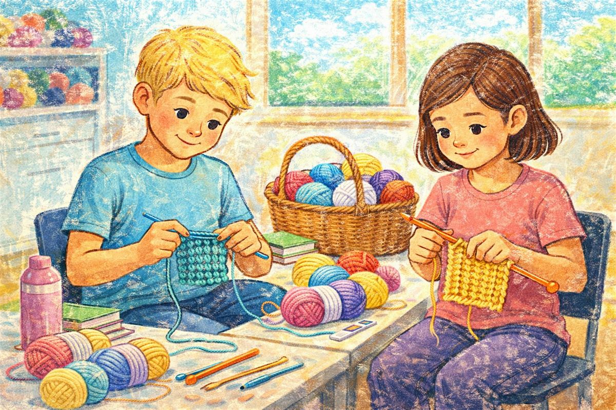 Die Kinder lernen bei Ramona spielerisch die Grundlagen des Häkelns und Strickens.