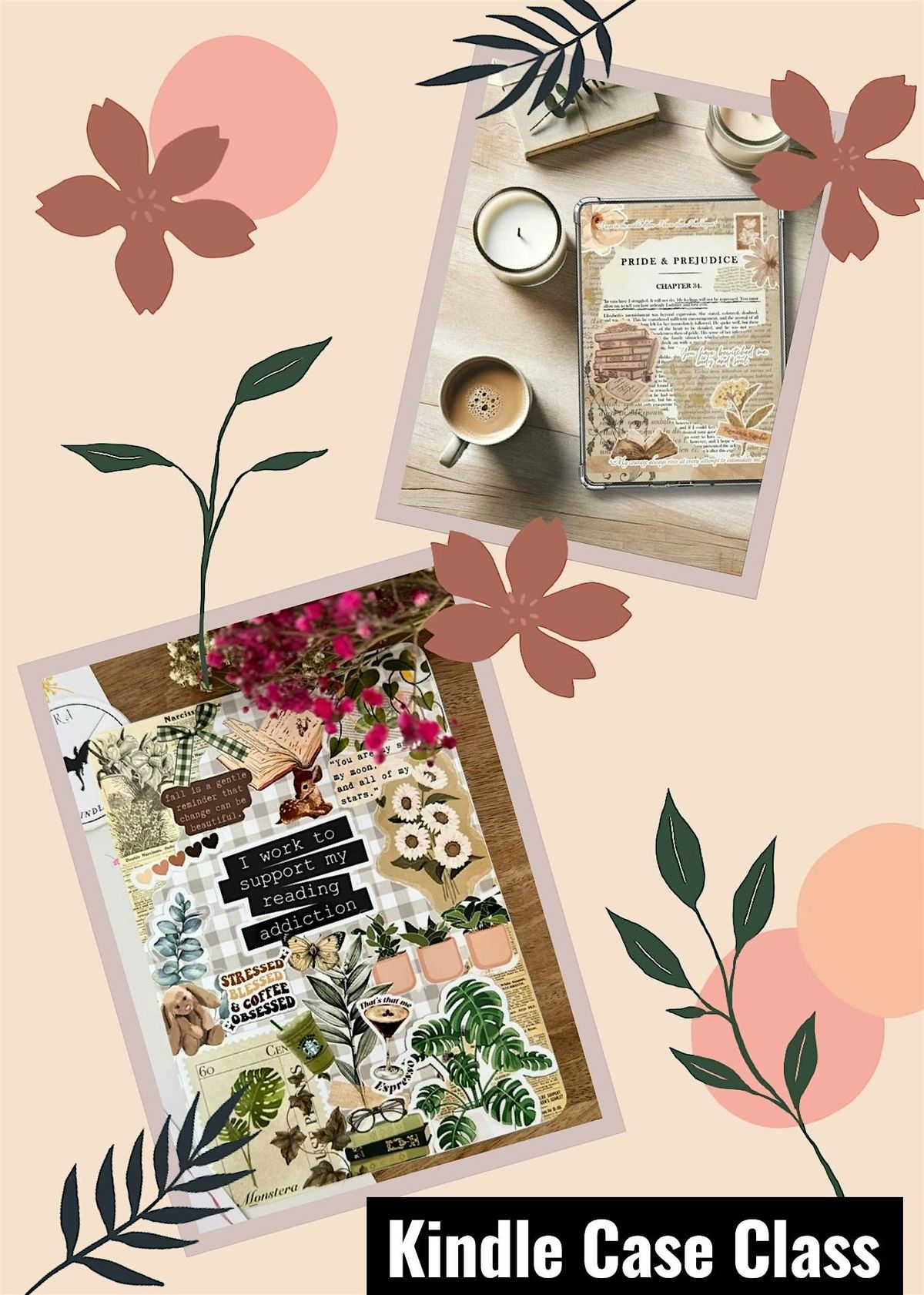Come design a custom kindle case! Take a clear case from drab to fab! Cases, papers, and decorative pieces all included!