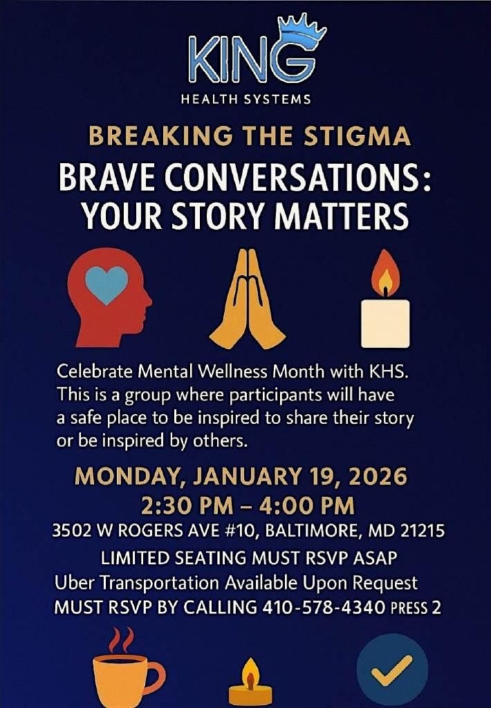 We're breaking down barriers and tackling mental health stigma head-on. Come hang out with us in person for a powerful conversation, real stories, and support. Let’s create a space where everyone feels heard and understood. Don’t miss out on this chance to connect, learn, and make a difference together!