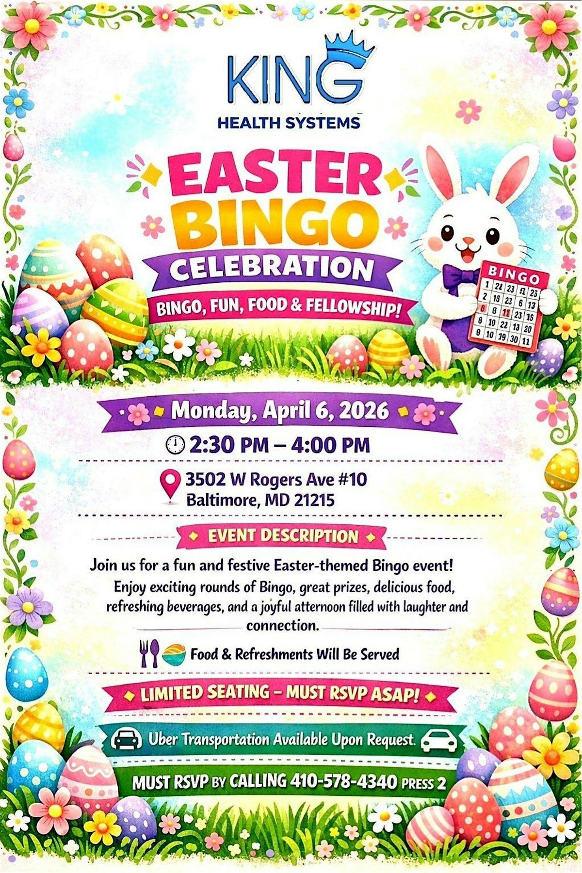 Join Us for King Health Systems: EASTER BINGO! with a PURPOSE