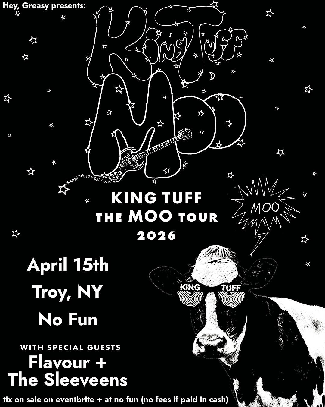 WED 4/15: King Tuff plays NO FUN in support of their new album MOO! Joined by Flavour (Troy) and The Sleeveens (TN) both w new records!