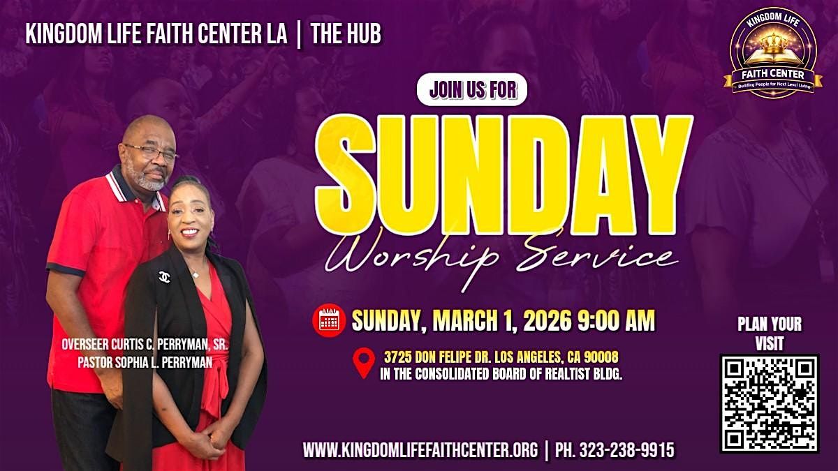 Come join us in person for a refreshing and uplifting experience at Kingdom Life Faith Center LA. Whether you're looking to connect with others, grow your faith, or just enjoy a warm community vibe, this event is for you. Expect good energy, inspiring messages, and a place where everyone feels welcome. Don’t miss out on a chance to be part of something amazing!