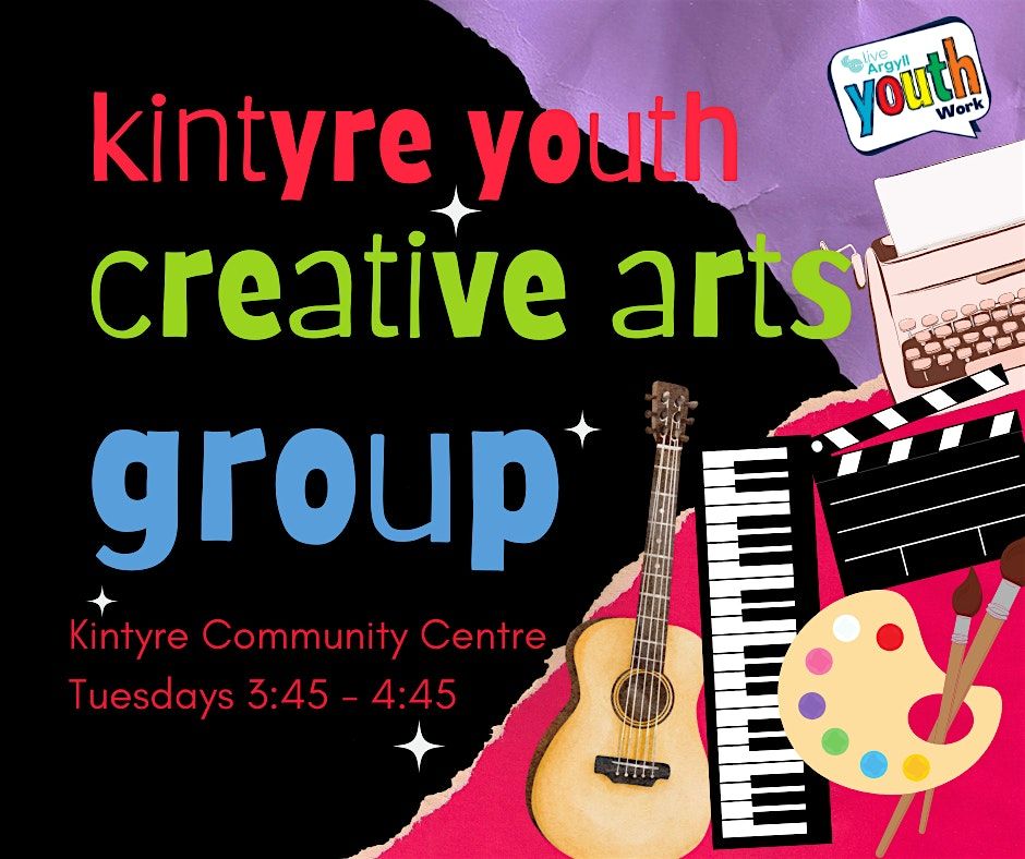 Facilitated by liveArgyll Youth Work at the Kintyre Community Education Centre. This weekly project is for young people (11 - 18) and aims to provide a relaxed space and support them to take part in a variety of creative arts activities; including music, creative writing, filmmaking, painting, and others. We have a number of instruments available for use, but feel free to bring your own, and come along and get creative.