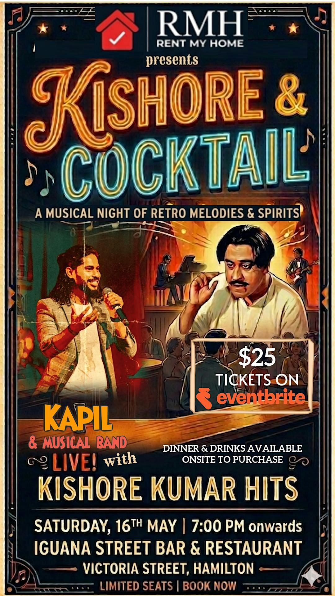 RENT MY HOME presents Kishore & Cocktail, a spectacular musical event dedicated to the legendary Kishore Kumar. This isn’t just a concert; it's a celebration of music, memory, vibe and energy.