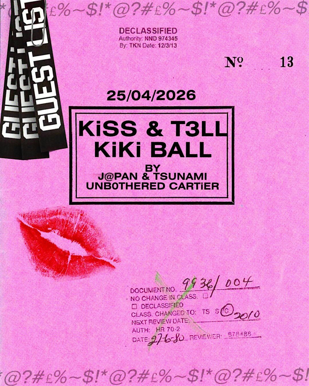 The infamous celebrity news site KNT cordially invites you to the ‘Kiss and Tell’ Kiki Ball, by Japan and Tsunami Unbothered Cartier.About this Event