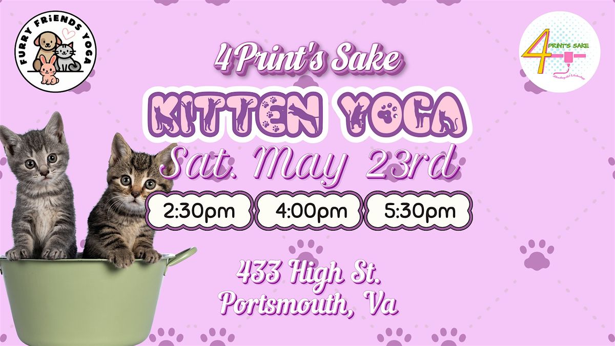 Join us for Kitten Yoga at 4 Print’s Sake, where gentle movement meets playful, heart-melting moments.