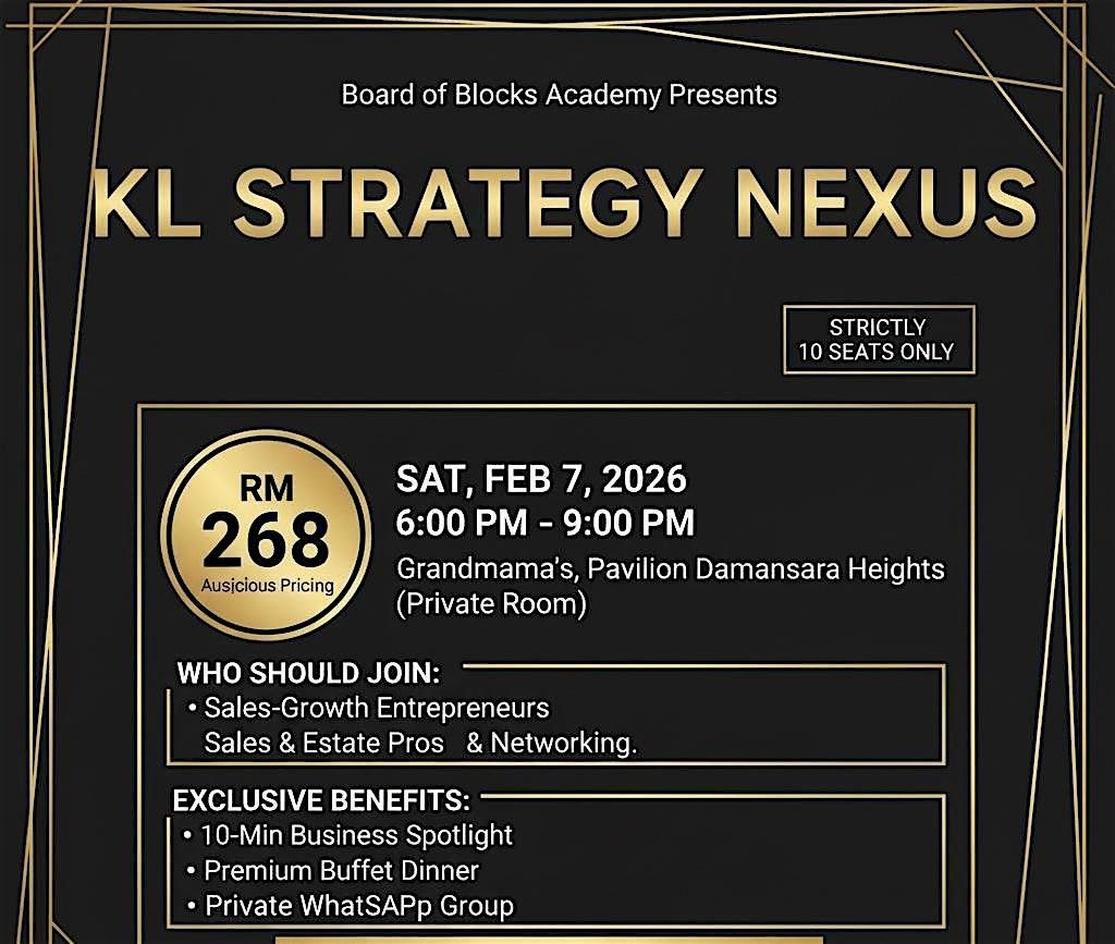 The KL Strategy Nexus is not conference-it is an ultra-exclusive, private dinner Mastermind limited to just 12 leaders (10 paid attendees + 2 hosts) focused on immediate usintarate and tangible growth.