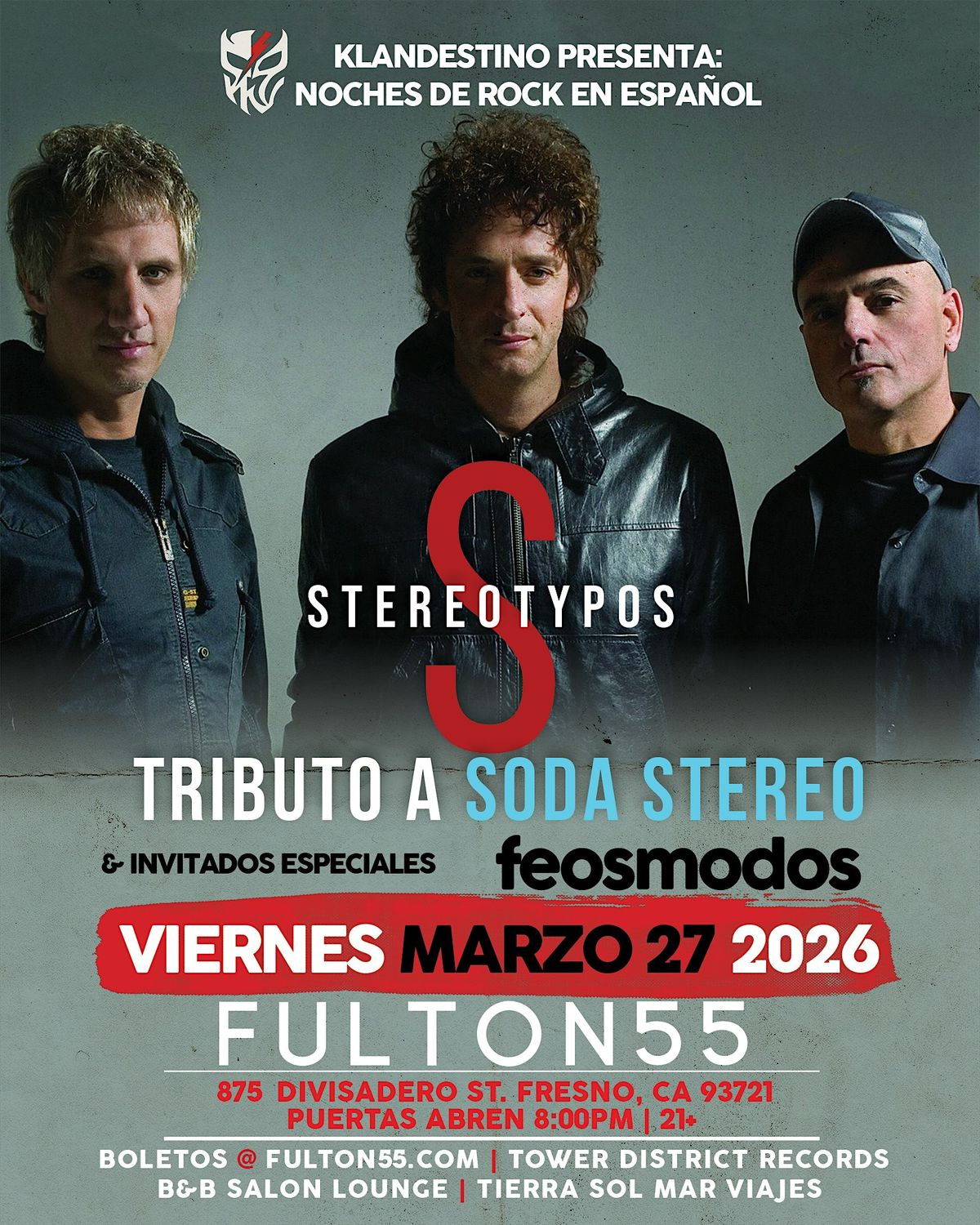 Stereotypos “La Experiencia” Soda Stereo is a recognized tribute band dedicated to performing the music of the iconic Argentine rock trio, Soda Stereo. Based in Los Angeles, CA, this group recreates the atmosphere and hits of Soda Stereo, offering fans an immersive experience of 80s and 90s Latin rock. Note that "Los Estereotipos" was also the original, early name of Soda Stereo before they became famous.