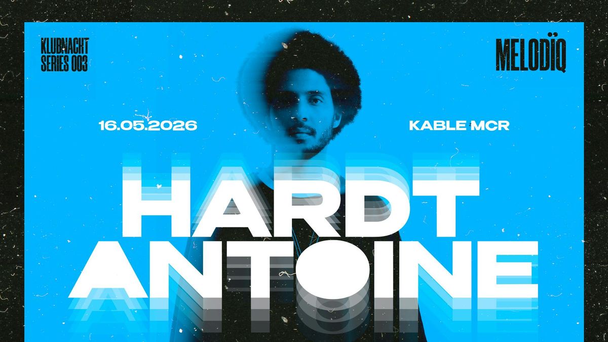 The next in our Klubnacht series is a big one. We have the chance to host one of our personal favourite DJ's and producers for his Manchester debut. His productions have featured at almost all of our parties and his style and sound is unmistakably unique.HARDT ANTOINE is a DJ and producer whose music reflects his French and Jamaican heritage, blending House, Techno, Classical, Soul, and ’80s Pop. His sound is built on infectious melodies, soulful vocals, and deep grooves, earning him releases on renowned labels such as Innervisions, Kompakt, Armada Music and Crosstown Rebels.In 2025, he delivered standout performances at DC10 for Circoloco, BAUM Festival, Junction 2, 20 Years of Innervisions, OFFSónar, and Brunch Electronik. He continues to play at electronic music’s most respected venues, including the legendary fabric London, Panorama Bar, Cova Santa and Volt Milano. He has appeared on the prolific Mayan Warrior and Robot Heart art cars at Burning Man have further cemented his reputation on the international circuit.